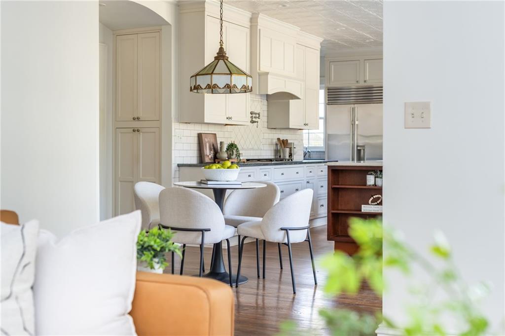 Set along one of Druid Hills’ most beloved streets, this extraordinary Georgian Revival on Fairview Road is a rare offering where historic integrity and thoughtful expansion exist in perfect harmony. A gracious, quintessential Druid Hills entry unfolds into a home that immediately reveals the depth of its restoration—intricate original moldings, beautifully preserved architectural details, and a commanding central staircase that anchors the residence with quiet elegance. The main level offers a remarkable sense of scale and flow, with an expansive formal living room seamlessly connecting to a more intimate fireside gathering space adjacent to the kitchen, while a sunlit sunroom showcases exquisite original Greek key tile—an unforgettable nod to the home’s heritage. A generously proportioned dining room designed for meaningful gatherings leads effortlessly into a butler’s pantry and onward to a stunning, fully realized kitchen featuring soapstone and marble surfaces, Wolf appliances, and a Sub-Zero refrigerator. Just beyond, a covered patio and breezeway create a natural extension of the living space and connect to an impressive three-car garage. Upstairs, a thoughtfully designed landing offers two flexible living areas ideal for a library, office, or lounge, along with three large, light-filled secondary bedrooms and two beautifully appointed baths. The primary suite is a true retreat, introduced by a private vestibule and accompanied by a spacious laundry area and elevator shaft access, offering both luxury and long-term livability. The serene bedroom overlooks the lushly landscaped grounds and opens to a refined marble-clad bath, complemented by a generously sized closet. An enormous unfinished attic presents a rare and valuable opportunity—ideal for a future office, playroom, media space, or additional suite, offering flexibility to evolve with your needs. One of the property’s most compelling features lies beyond the main residence—an expansive carriage house with soaring ceilings, rich with potential and ready to be tailored to your vision. Every inch of this home reflects a deep commitment to preservation and quality, with the sellers investing thoughtfully to honor its history while enhancing its functionality for modern living. All of this is set on a classic, substantial Druid Hills lot, just moments from Paideia, the Freedom Park Path and BeltLine, and the vibrant offerings of Virginia Highland, Inman Park, and Poncey Highland, with close proximity to Emory and the CDC—an exceptional opportunity to steward a truly special piece of Atlanta’s architectural legacy.